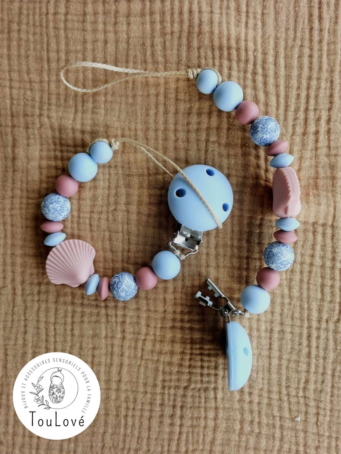 Cet attache-tétine est un véritable bijou sensoriel pour bébé. Fait main à La Réunion avec des matériaux sûrs et de qualité, il garde la sucette toujours à portée de main et évite qu’elle ne tombe ou se salisse.