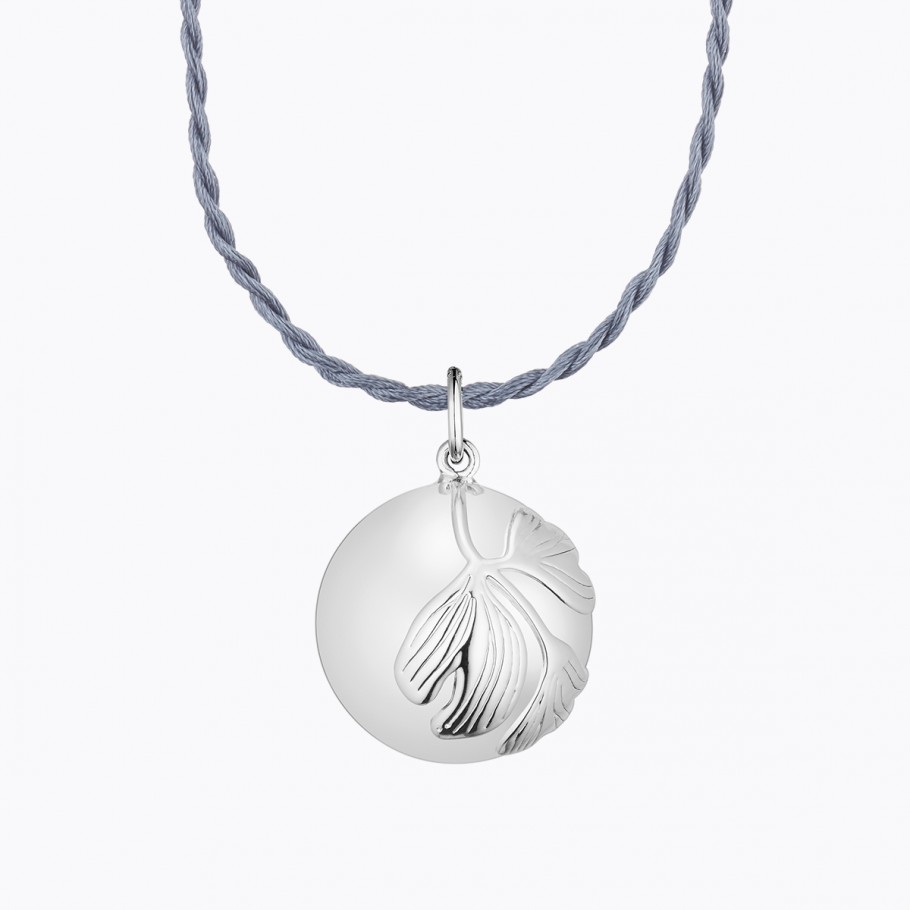 Mesures : diamètre pendentif : 20 mm, longueur cordon : 1100 mm