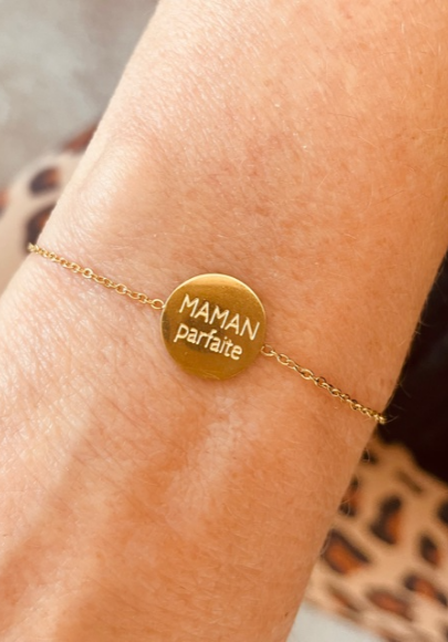 Bracelet avec médaille gravée « Maman parfaite » coloris or