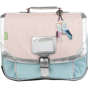L’année scolaire s’annonce radieuse avec le cartable Mia, paré des couleurs rose et bleu ciel aussi délicates qu’harmonieuses. Agrémenté d’une ganse argentée pour une touche de brillance, ce cartable offre une esthétique lumineuse et élégante. Un adorable porte-clés représentant deux inséparables, l’un à partager avec son ou sa meilleur(e) ami(e), vient enrichir l’univers enchanteur de ce modèle. Ce cartable Tann’s d’un dos de 41 cm est adapté aux classes de CE2, CM1 et CM2.