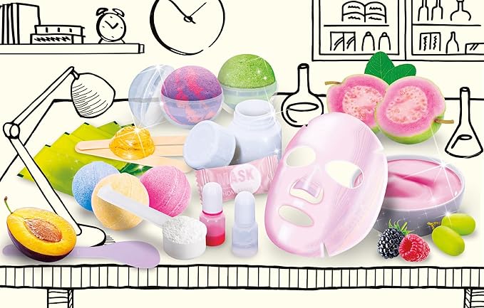 - Masques visage en tissu compressé base liquide pour masques, arôme naturel, moule à bombes de bain, bol, spatule, verre doseur, crème visage, argile blanche, colorant, bicarbonate de soude, acide citrique, manuel illustré