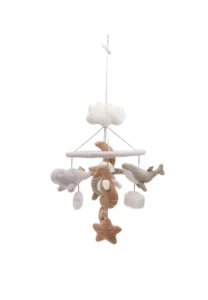 Faites découvrir à votre enfant le monde merveilleux de l’océan avec notre mobile Deep Sea. Ce mobile enchanteur est parfait pour être suspendu au-dessus du parc et permet à votre bébé de profiter d’une mer d’aventures. D’adorables créatures marines telles que des petites baleines, des petites tortues et des petits hippocampes sont suspendues au mobile, enrichi de coquillages, d’étoiles et de petites lunes amusantes. Les différents tissus, dont le tissu bouclette aux couleurs biscuit,vert olive et avoine beige, offrent une expérience sensorielle inouie. Introduisez les océans dans la chambre de votre bébé et laissez-le s’émerveiller devant le monde sous-marin grâce à ce magnifique mobile suspendu.