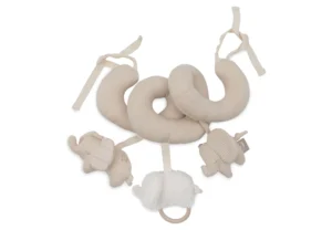 Cette spirale d’activités joyeuse de la collection Elephant Tales est conçue pour stimuler les sens de votre bébé et encourager son développement moteur. Composée de trois adorables éléphants – un en tissu côtelé doux, un avec des oreilles à carreaux et un en velours luxueux – elle propose une variété de textures et de couleurs qui éveillent la curiosité de bébé. Facile à attacher à la poignée du siège-auto (type Maxi-Cosi) ou au parc, elle garde les jouets préférés de votre enfant toujours à portée de main.